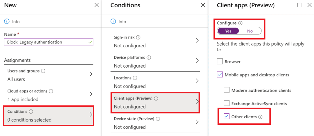 - Conditions: Client apps (Preview): Other client