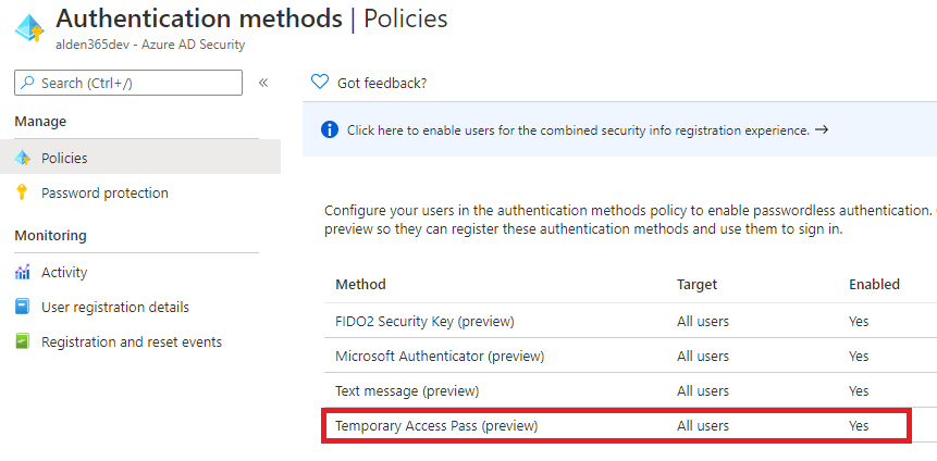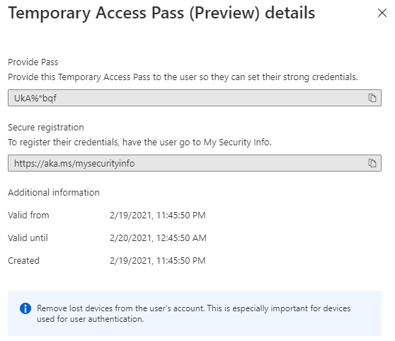 Configure a Temporary Access Pass in Azure AD to register Passwordless authentication methods | Microsoft Docs