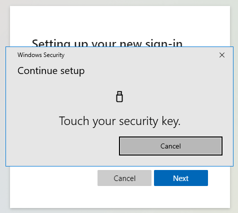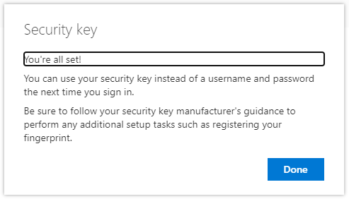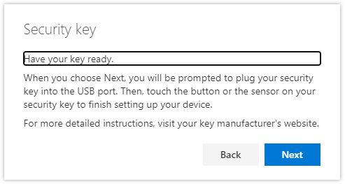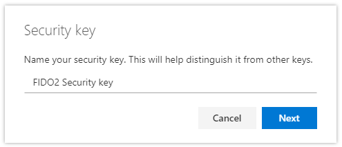 - Registration of FIDO2 security keys needs to be completed within 10 minutes after the first sing-in