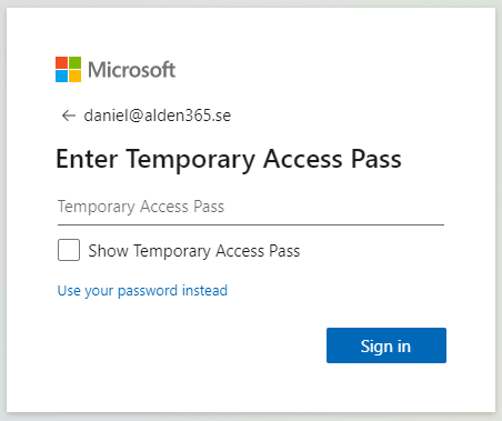 When the code is active you will be prompted to sign in with TAP code next sign-in.