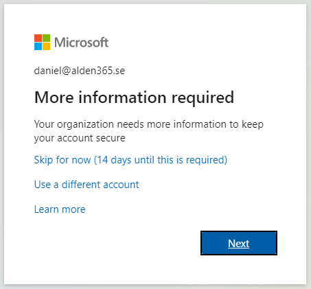If you click next you didn’t got the prompt to register FIDO2 security key. Even if you click “Skip for now (14 days until this is required)” you will be prompted to register MFA again before save the FIDO2 security key.