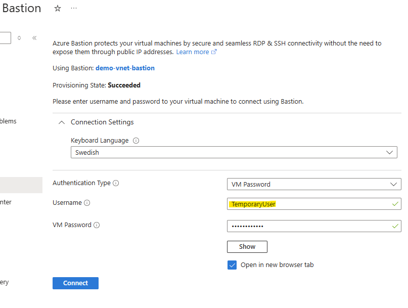 - Connect to your VM and sign-in with existing local admin account or the account you created in step 1.